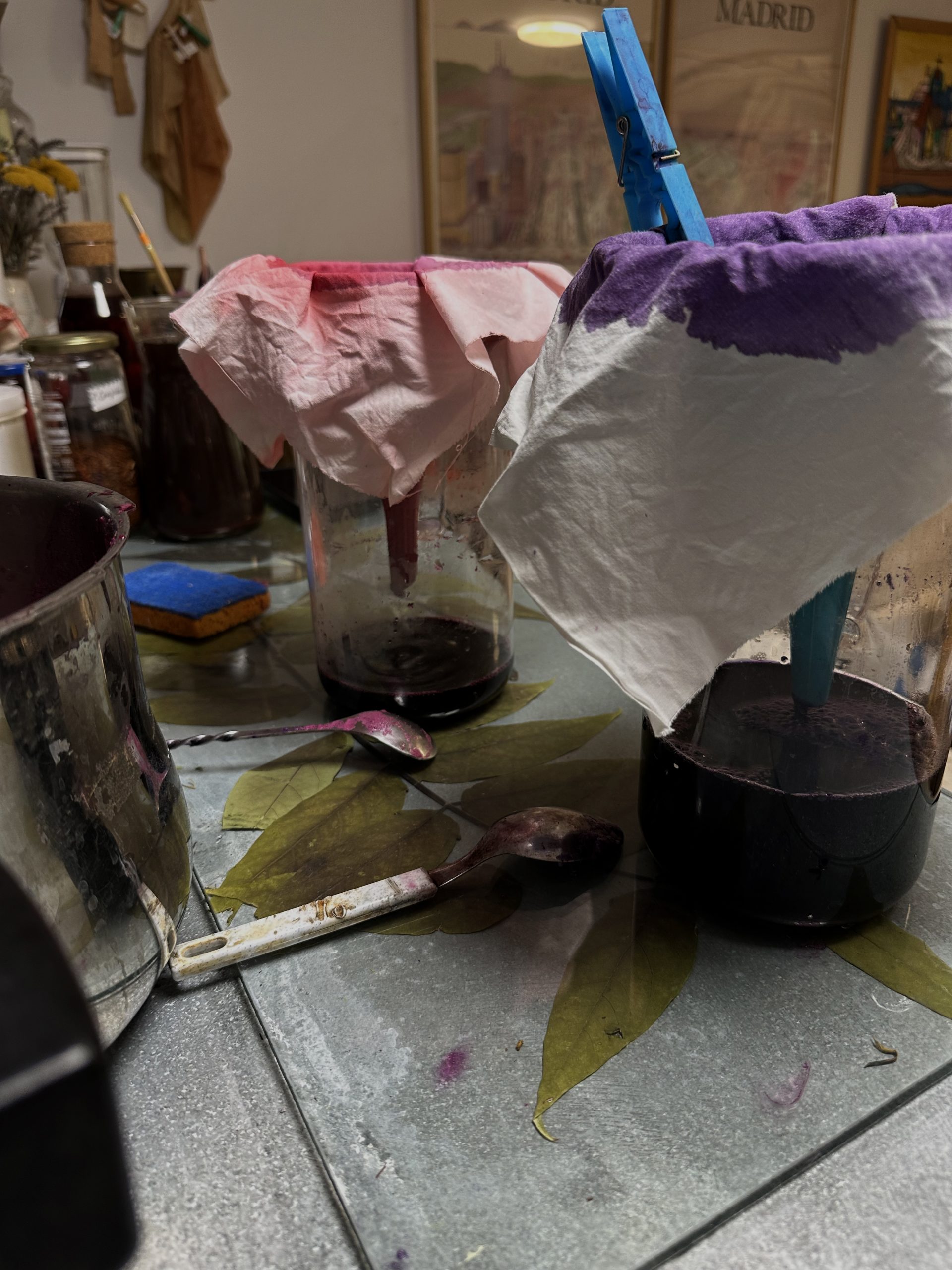 Llegué a ella a través de su libro Sentir el color. Tintes naturales. Tiempo después, y sin saber que era la misma persona, nos conocimos en el colegio Waldorf de Las Rozas. De ese encuentro surgieron varias conversaciones y visitas, una de ellas a su taller, donde me enseñó su colección de pigmentos y donde hicimos juntas el proceso para conseguir varios colores. Pueden ver algo de su trabajo en @cchidri y comprar su libro en la página de la editorial rudolf steineren