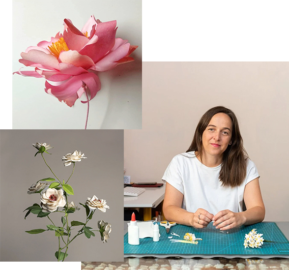 Hace 6 años creó su taller Níkua, que se encuentra en un pueblo de Valladolid. En él estudia la flora y la interpreta a través del papel y la tela. Colabora con directores de arte, fotógrafos, floristas y biólogos, y crea pequeñas colecciones cápsula, siempre relacionadas con las flores y las plantas